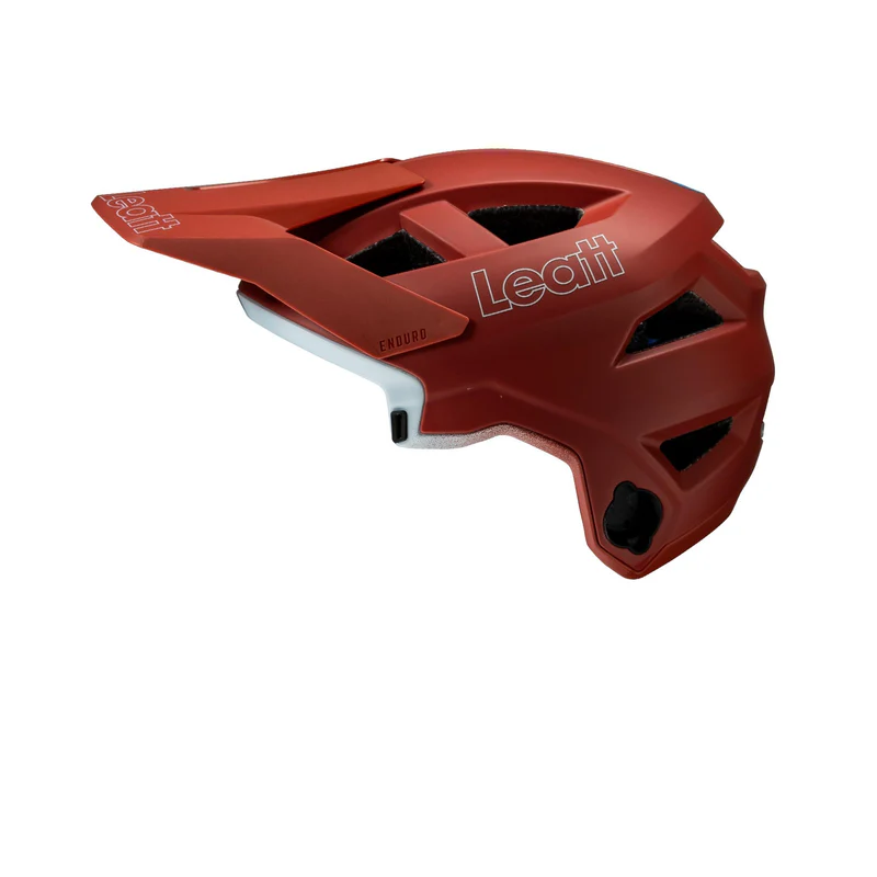 Casco Leatt Enduro 2.0 con carcasa de polímero ligero, Tecnología Turbina 360° y mentonera desmontable. Ofrece ajuste preciso con microajustador trasero, visera ajustable con desprendimiento y puerto para gafas de sol.