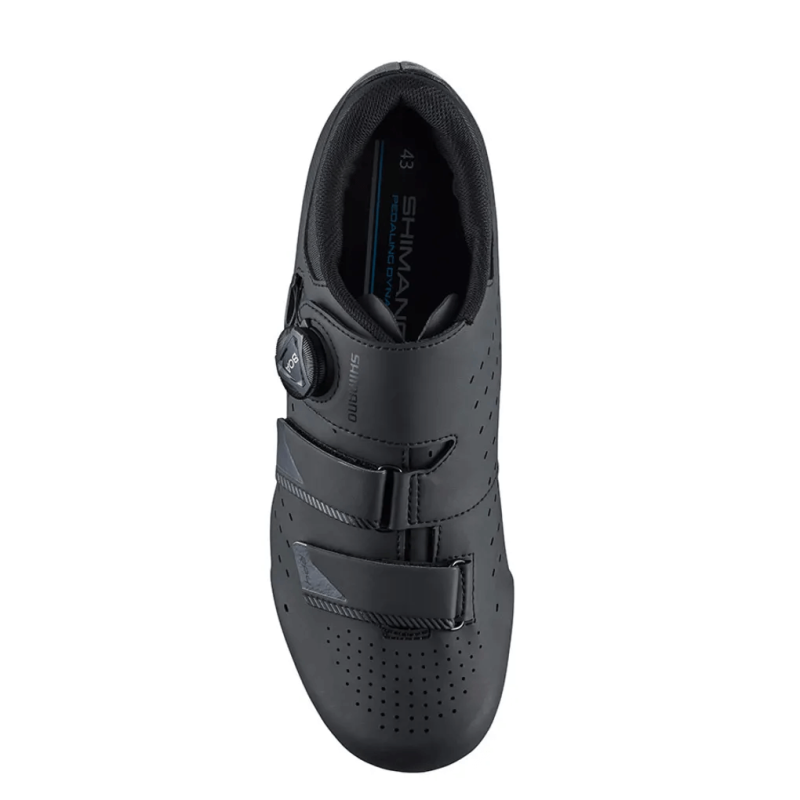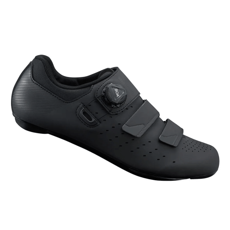 ZAPATILLAS SHIMANO RP4 NEGRAS fabricadas en piel sintética de alta densidad con perforaciones que mejora el ajuste y la transpirabilidad. Con dial BOA L6 para un microajuste rápido y preciso. Tiras de cierre que liberan la tensión en el punto más alto del pie. Suela de nailon reforzada con fibra de vidrio ligera para una transferencia de potencia óptima.