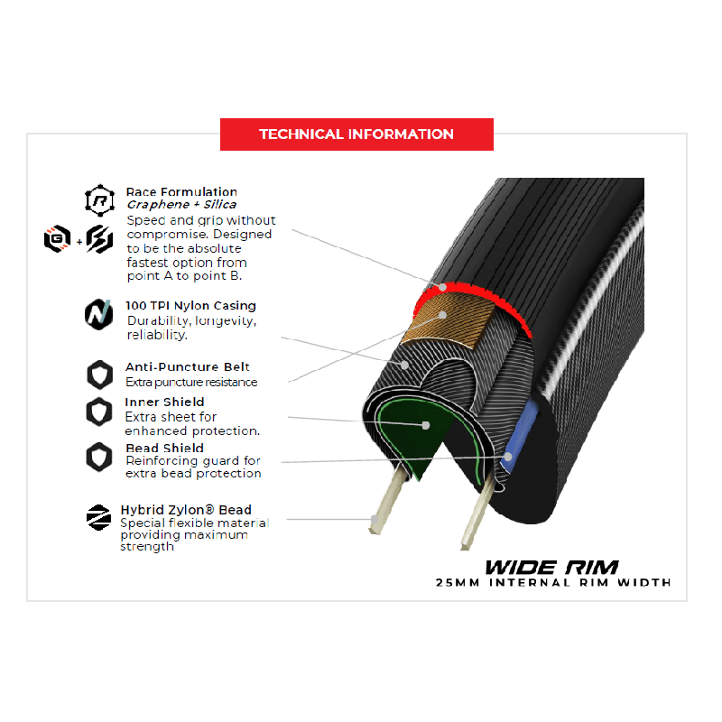 - Compuesto Avanzado: La tecnología Race Graphene + Silica proporciona un agarre inigualable, una resistencia a la rodadura mínima y una durabilidad excepcional.