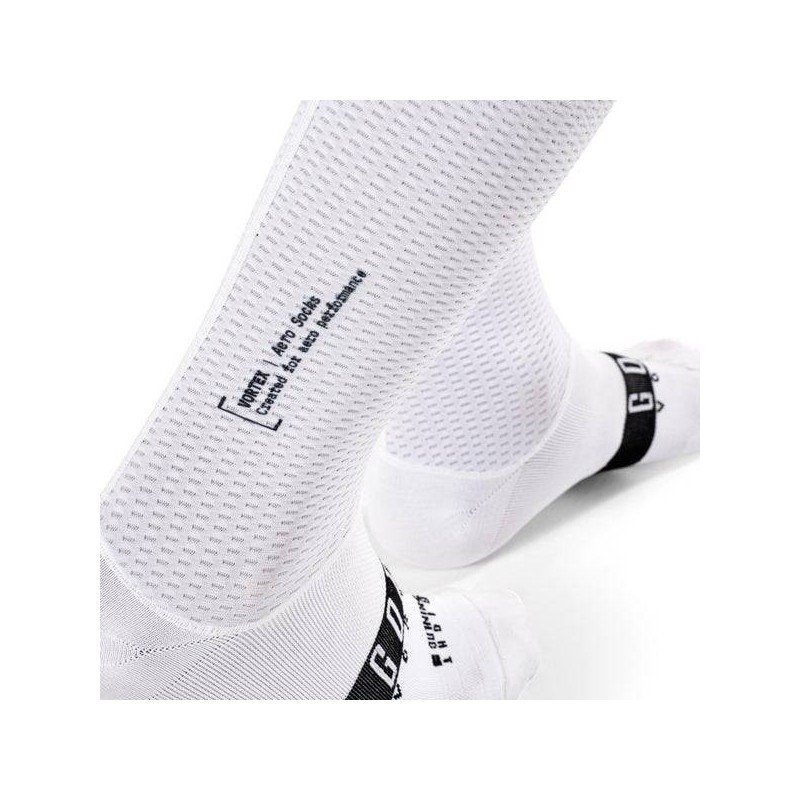 Los CALCETINES GOBIK VORTEX WHITE son unos calcetines de caña prolongada aerodinámicos y ligeros. Enfocados para rendir al máximo durante competiciones o entrenamientos intensos en días cálidos.