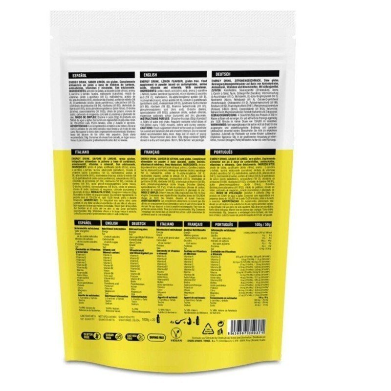 Bebida energética formulada con amilopectina, aminoácidos, vitaminas y minerales. Apta para veganos, sin gluten, sin lactosa y sin azúcar favoreciendo así la total asimilación de los nutrientes.