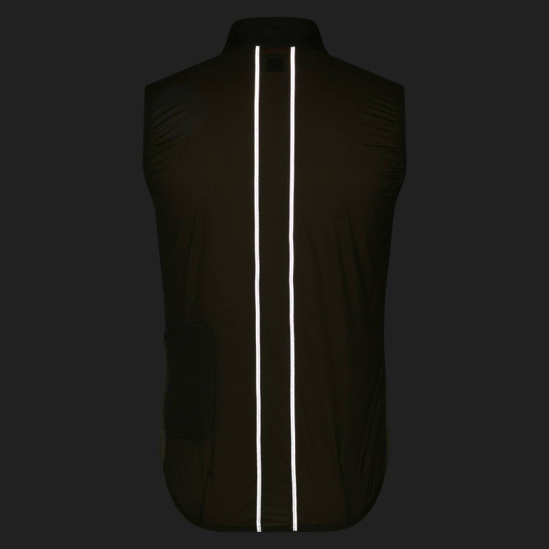 Protección en un pequeño paquete: un chaleco ligero que bloquea el viento a la vez que amplía el espacio de almacenamiento y mejora la visibilidad.