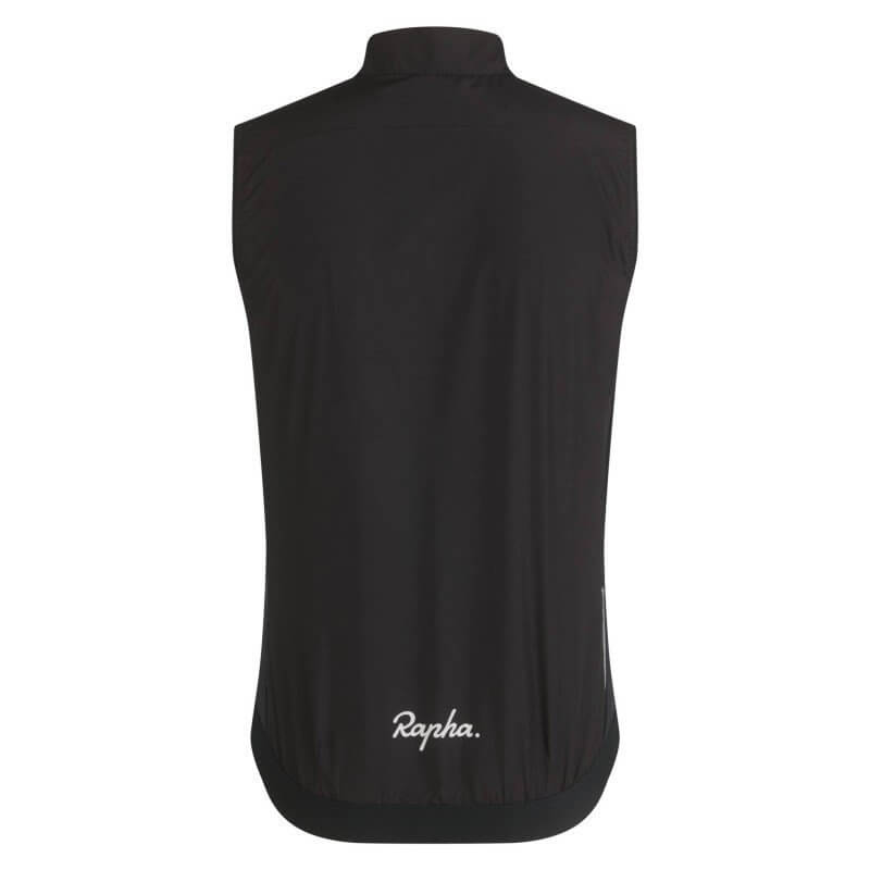 El CHALECO RAPHA MENS CORE GILET BLACK WHITE Una capa ligera indispensable para las salidas tempranas, con el confort y el estilo característicos de Rapha, que cabe fácilmente en el bolsillo del maillot.