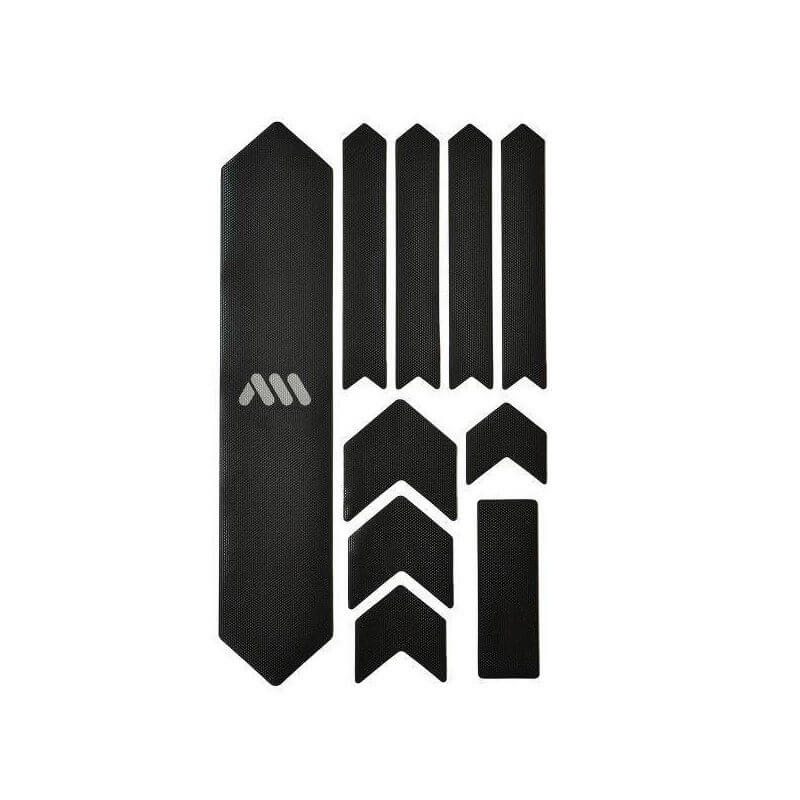 - 10 piezas para un sistema de protección universal: 1 pieza grande para el tubo diagonal; 4 piezas de flecha para extender la protección del tubo diagonal o tubo superior, 4 piezas para la vaina; 1 rectángulo para protección contra desgaste de cables u otros usos.