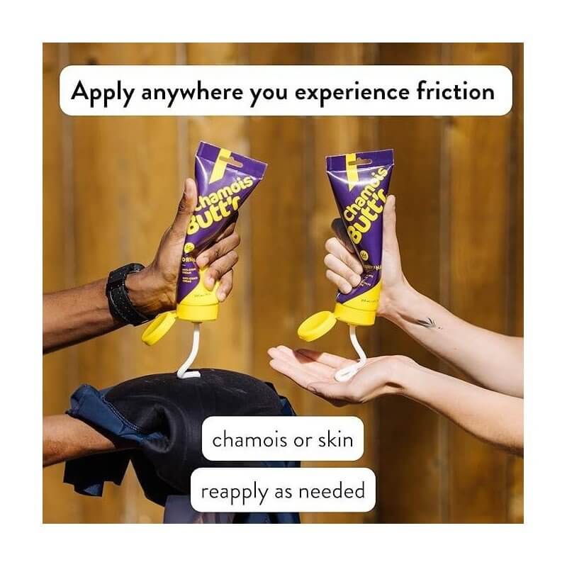 Aplicar directamente sobre la piel y/o pantalones cortos de ciclismo antes de cada viaje para evitar rozaduras. Vuelve a aplicar según sea necesario para mantener una piel saludable.