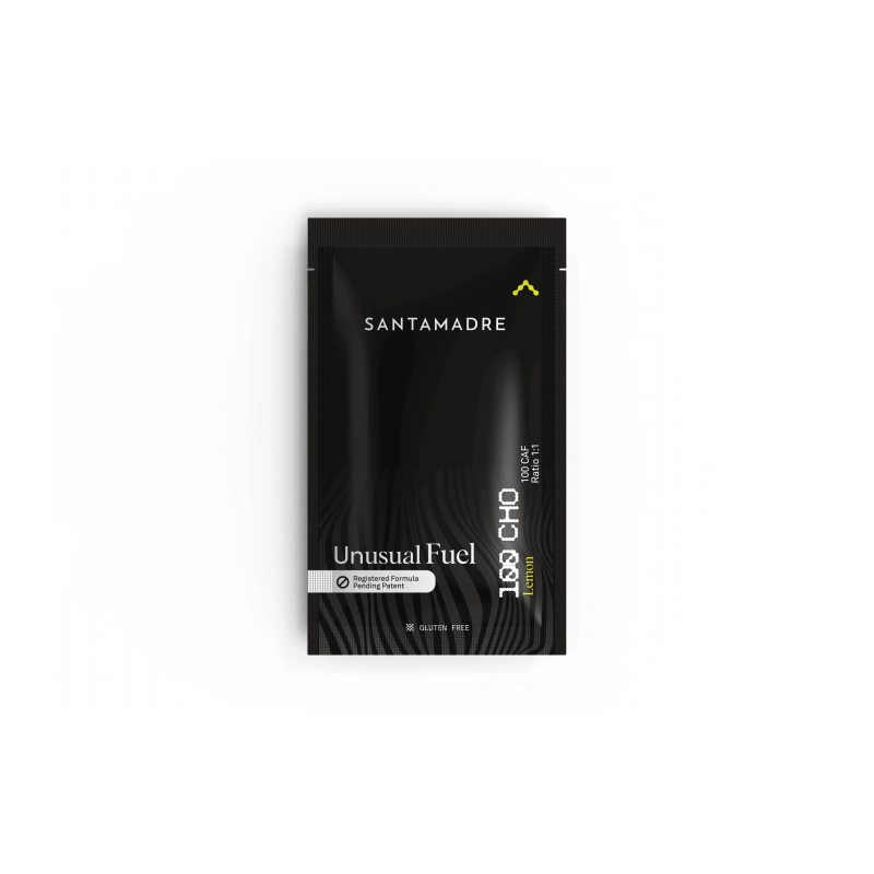 SANTAMADRE UNUSUAL FUEL 100CHO (RATIO 1:1) es una revolucionaria bebida que aporta 100g de carbohidrato por 500ml y 500mg de sodio.