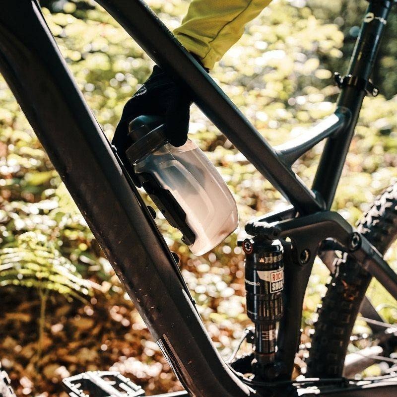 El BIDON FIDLOCK TWIST + PORTABIDON con su Innovador sistema magnético que mantiene la botella en su lugar. Fidlock fue diseñado específicamente para eliminar jaulas de botellas convencionales, para ocupar el menor espacio posible en el cuadro de la bicicleta.