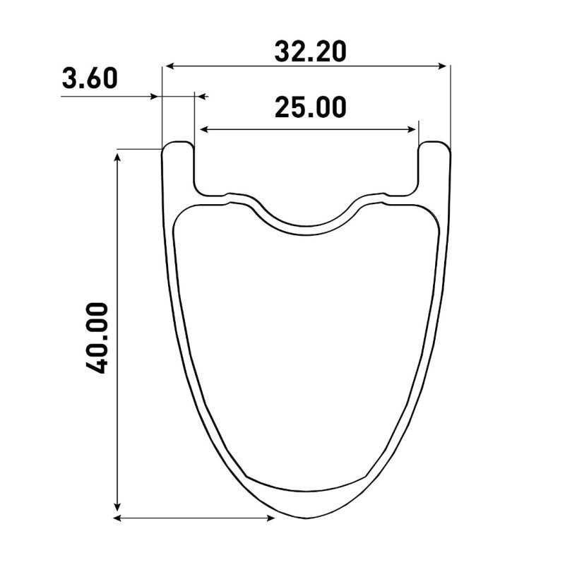 Anchura de la llanta de 25 mm y altura del perfil de 40 mm
