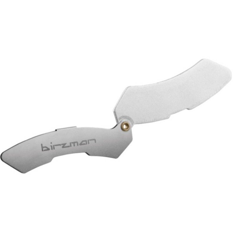 La HERRAMIENTA AJUSTA DISCOS DE FRENO BIRZMAN RAZOR es una herramienta de alineación de la pinza de freno de disco que crea un espacio igual entre las pastillas de freno y el rotor para los ajustes de la pinza. El Razor Clam cuenta con un mango plegable que permite una mejor accesibilidad cuando está en uso y proporciona un almacenamiento intermedio. El diseño de cuerpo alargado admite pinzas de dos y cuatro pistones.
