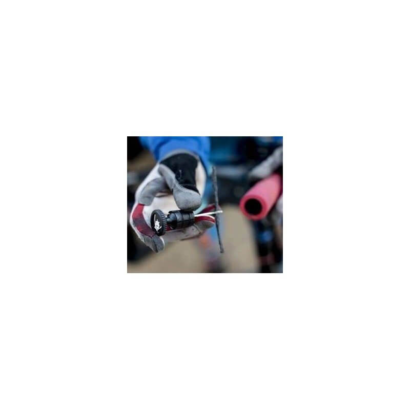 El KIT REPARA TUBELESS SAHMURAI SWORD ha revolucionado el sistema de reparación de pinchazos por mechas. Es tan ingenioso como fácil de llevar y de usar. Un modo de reparar los pinchazos grandes que el líquido preventivo no puede abarcar. Se colocan en el manillar en lugar de los tapones del mismo, para evitar posibles lesiones o que pinchen el depósito de agua. El kit se compone de una lima para preparar el pinchazo, un portamechas para colocarla y tapar el pinchazo, y 5 mechas listas para usarlas.